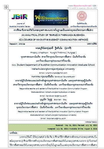 Currently, there are Theravada Buddhist temples and other places of worship that organize activities that present Dhamma content in new ways. through new media and interesting activities In order to attract Buddhists to pay attention. By inserting Buddhist teachings mixed with communication strategies with various new media. Or it is called Buddhist communication innovation in order to be interesting in communication and focus on presenting the essence of the teachings.