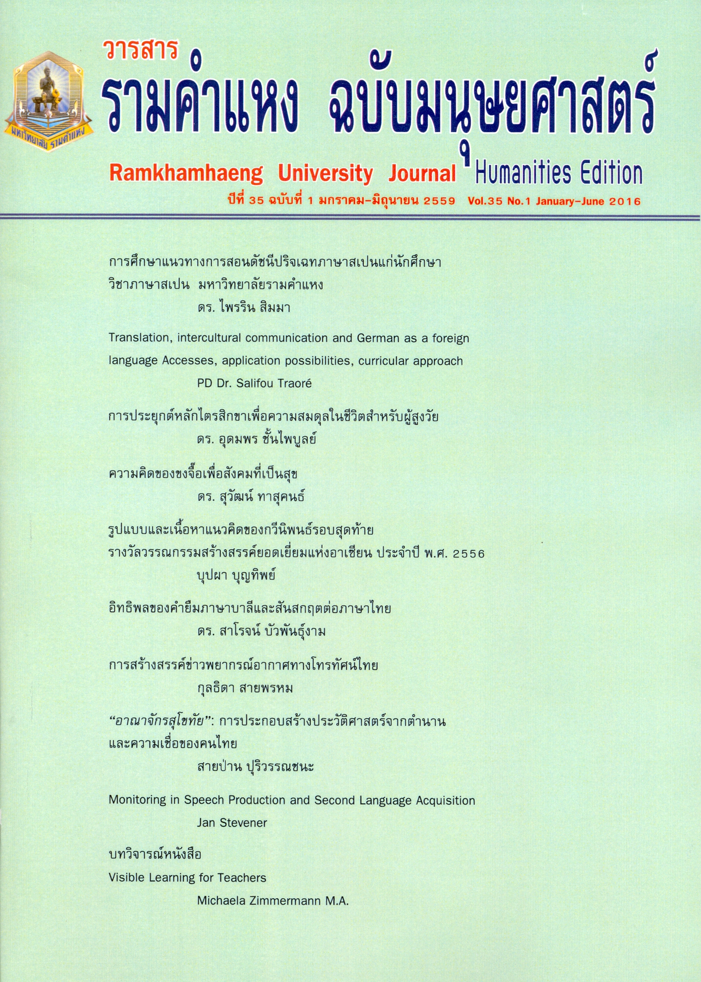 การศึกษาแนวทางการสอนดัชนีปริจเฉทภาษาสเปนแก่นักศึกษา วิชาภาษาสเปน มหาวิทยาลัยรามคำแหง The Study of Spanish Discourse Markers Teaching on Ramkhamhaeng University’s Students of Spanish
